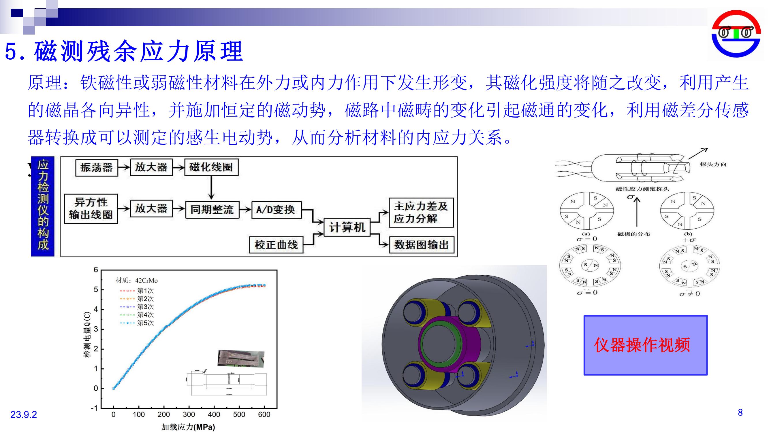 鐵磁性或弱磁性材料在外力或內力作用下發生形變,其磁化強度將隨之改變,利用產生的磁晶各向異性,并施加恒定的磁動勢,磁路中磁疇的變化引起磁通的變化,利用磁差分傳感器轉換成可以測定的感生電動勢,從而分析材料的內應力關系。